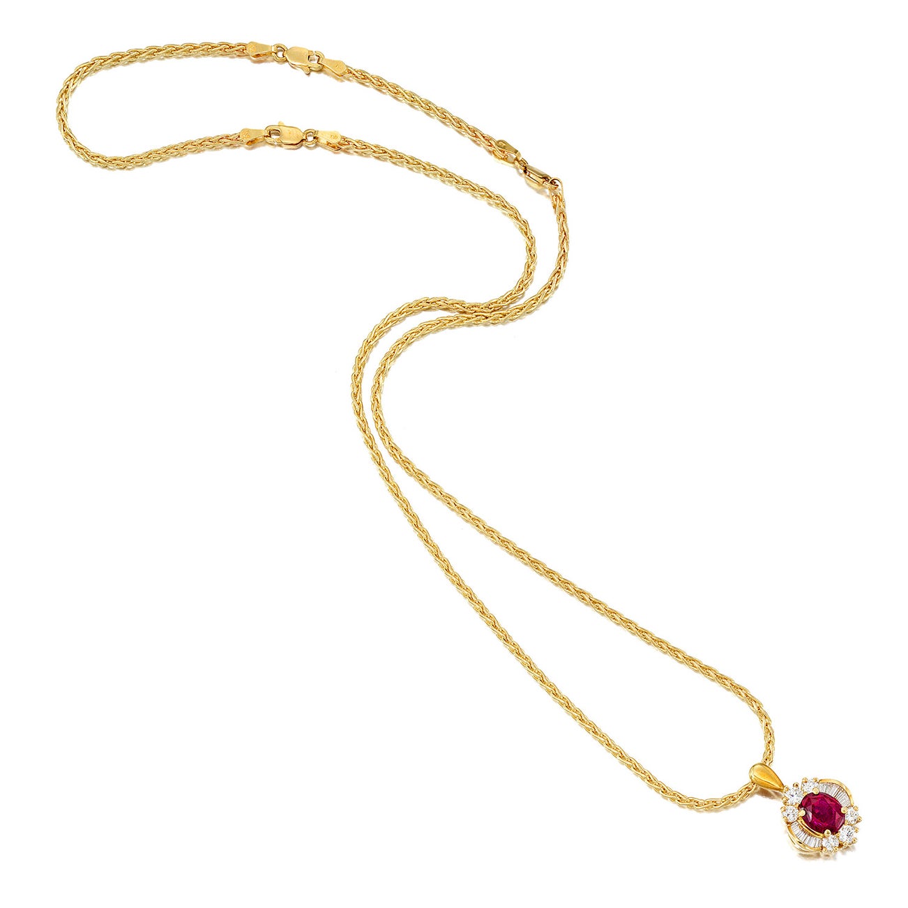 A Ruby, Diamond, and Gold Pendant Necklace