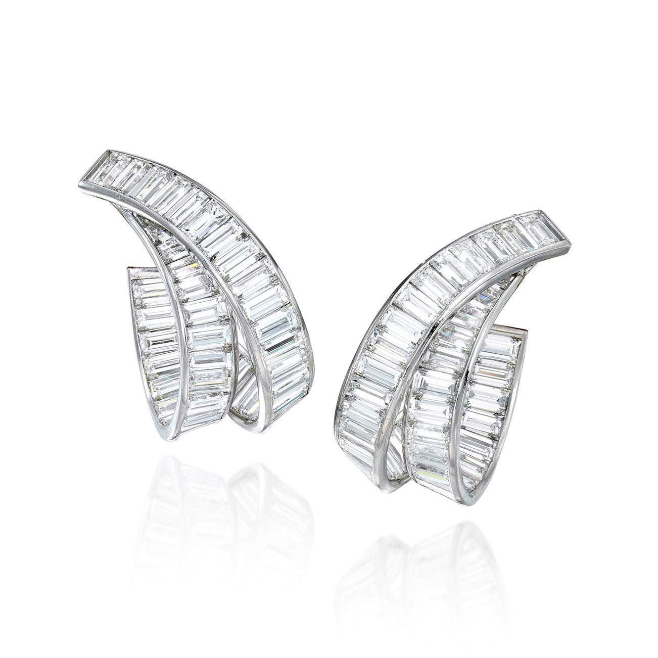 Rectangular step-cut, trapezoid step-cut, and triangular-shaped diamonds, total approximately 29.90 cts.