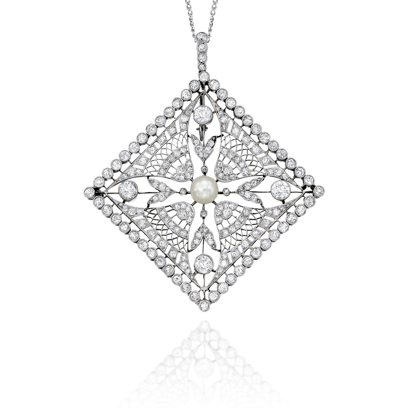 A Belle Époque Natural Pearl, Diamond, and Platinum Pendant Necklace