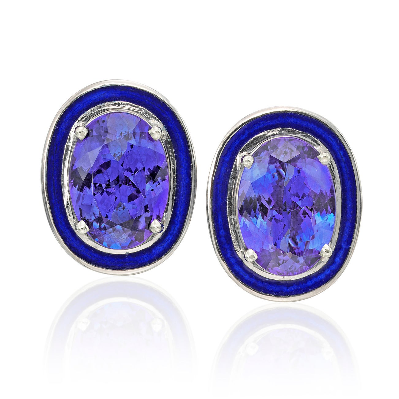 A Pair of Tanzanite, Enamel, and White Gold Earclips