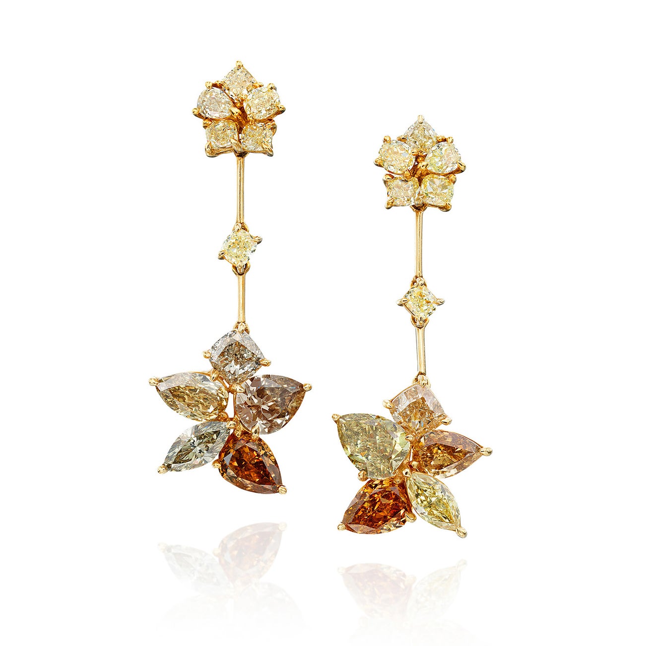 Pear-cut, cushion-cut, marquise-cut fancy colored diamonds, total approximately 13.75 cts.