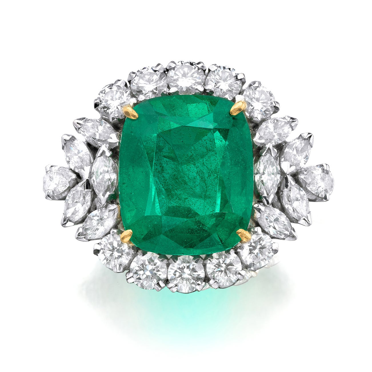 Cushion brilliant-cut emerald, total approximately 8.40 cts.