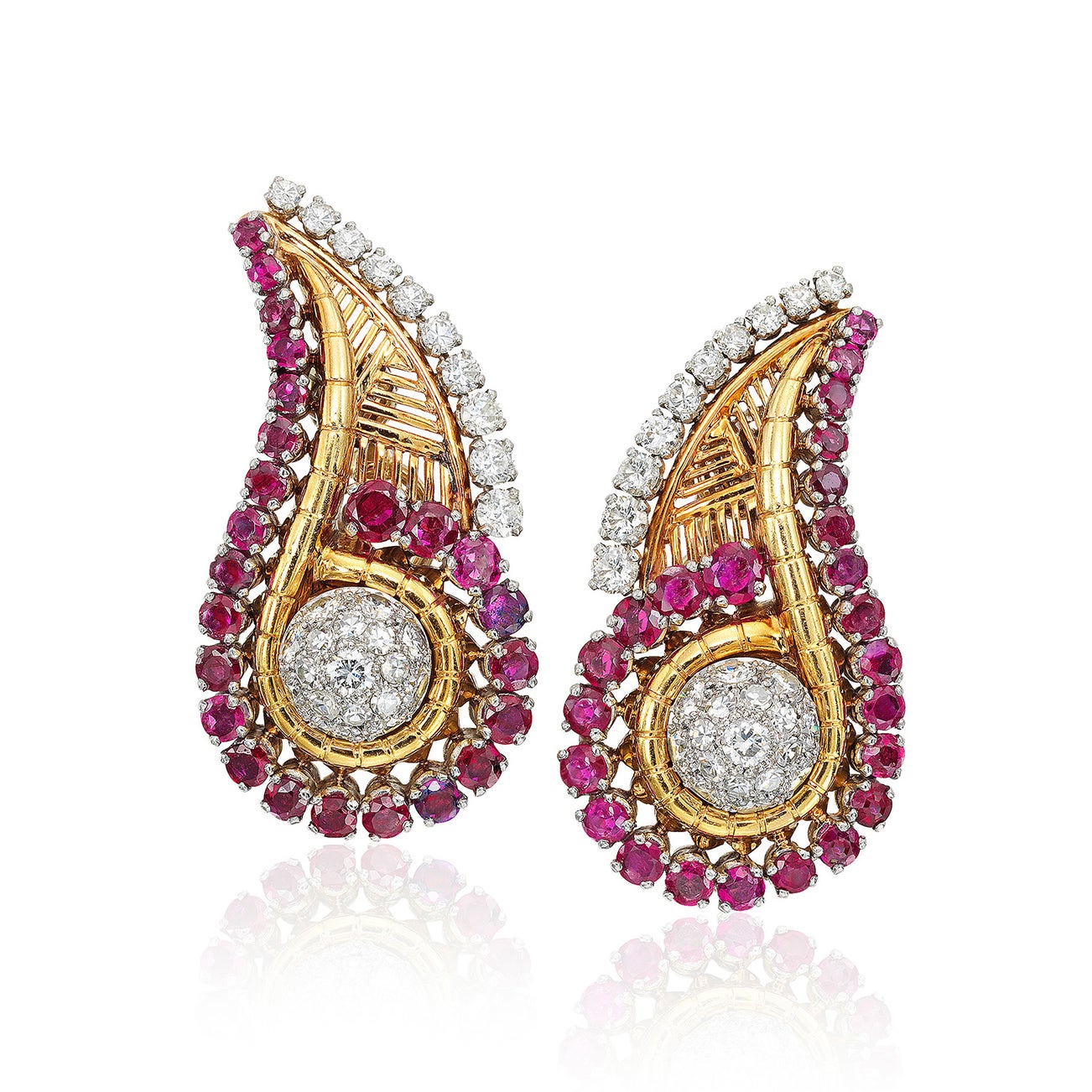 A Pair of Ruby, Diamond, Gold, and Platinum Earrings