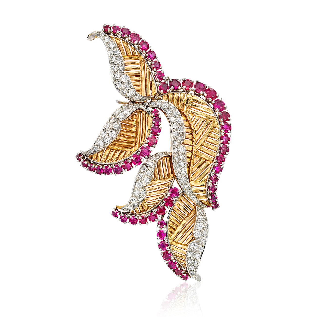 A Diamond, Ruby, Gold, and Platinum Brooch