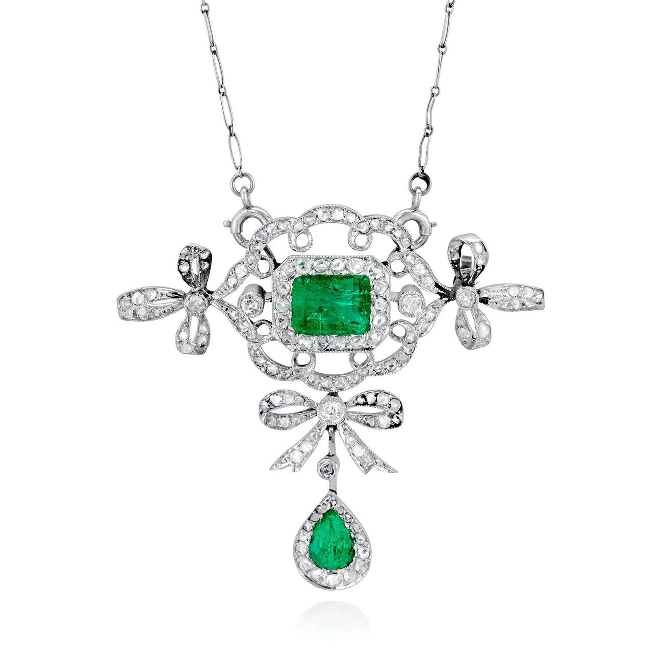 A Belle Époque Emerald, Diamond, and Platinum Pendant Necklace