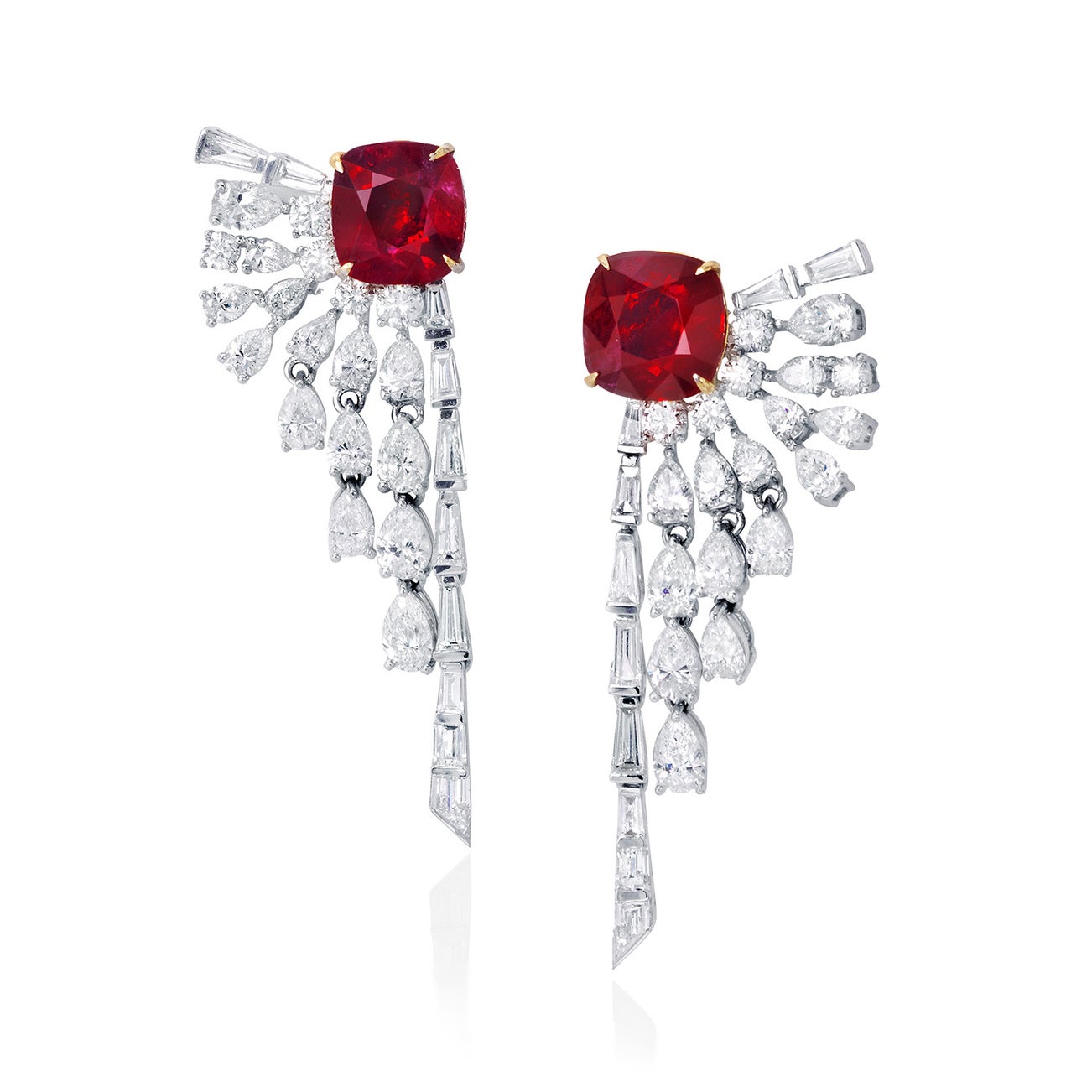 A Pair of Ruby, Diamond, and White Gold Earrings