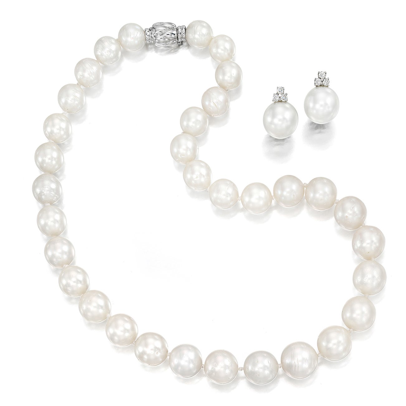 An Italian Cultured Pearl and White Gold Necklace and a Pair of Pearl and White Gold Earrings
