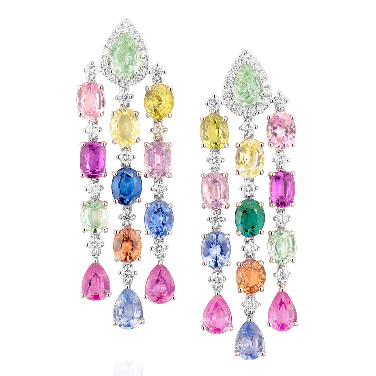 - Eight pear and eighteen oval-shaped coloured sapphires, 20.75 carats total