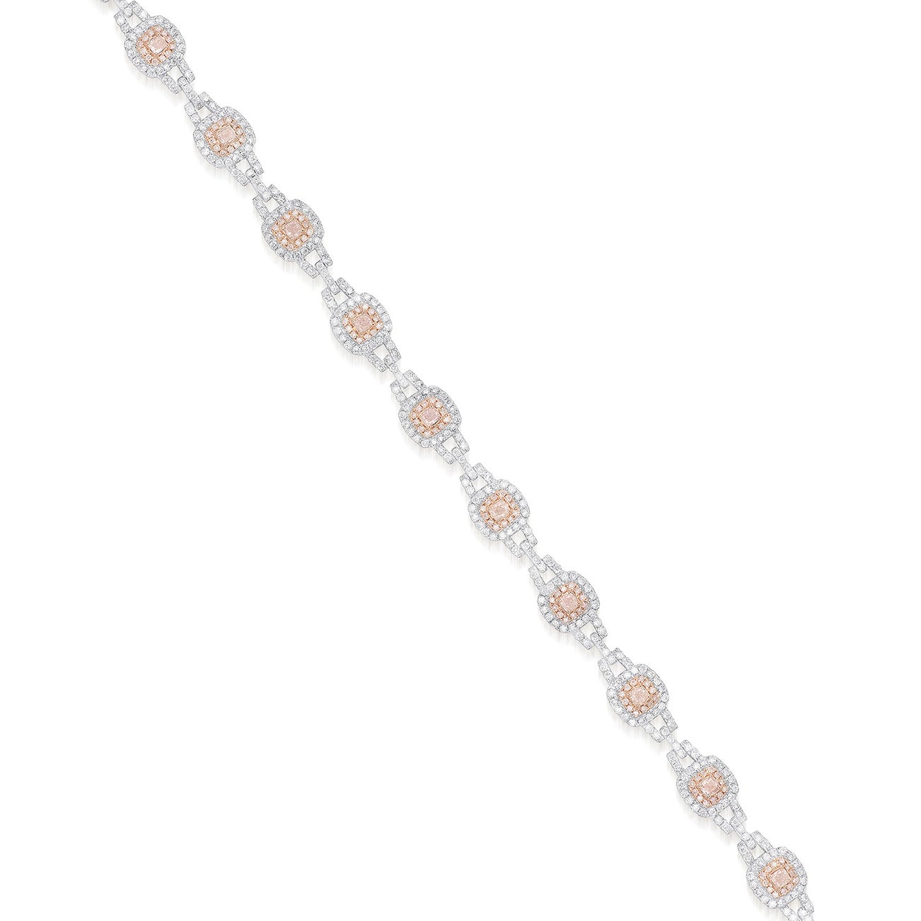 - Brilliant-cut pink diamond and diamond surround, joined by diamond-set links, 3.93 carats total