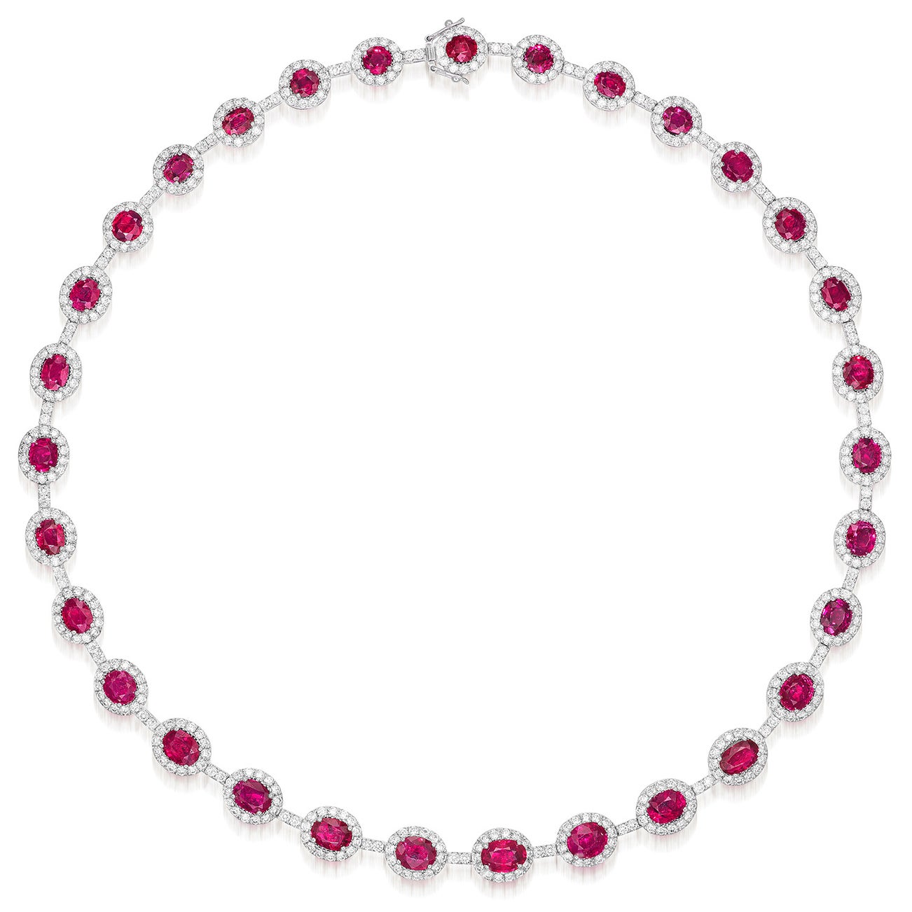 - Twenty-eight gradually set oval and cushion-shaped rubies, 23.01 carats total