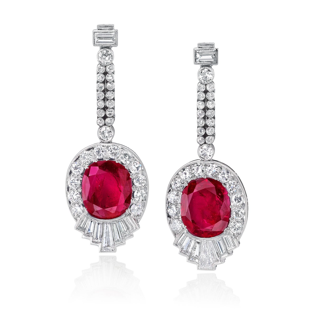 A Pair of Ruby, Diamond, and Platinum Earrings
