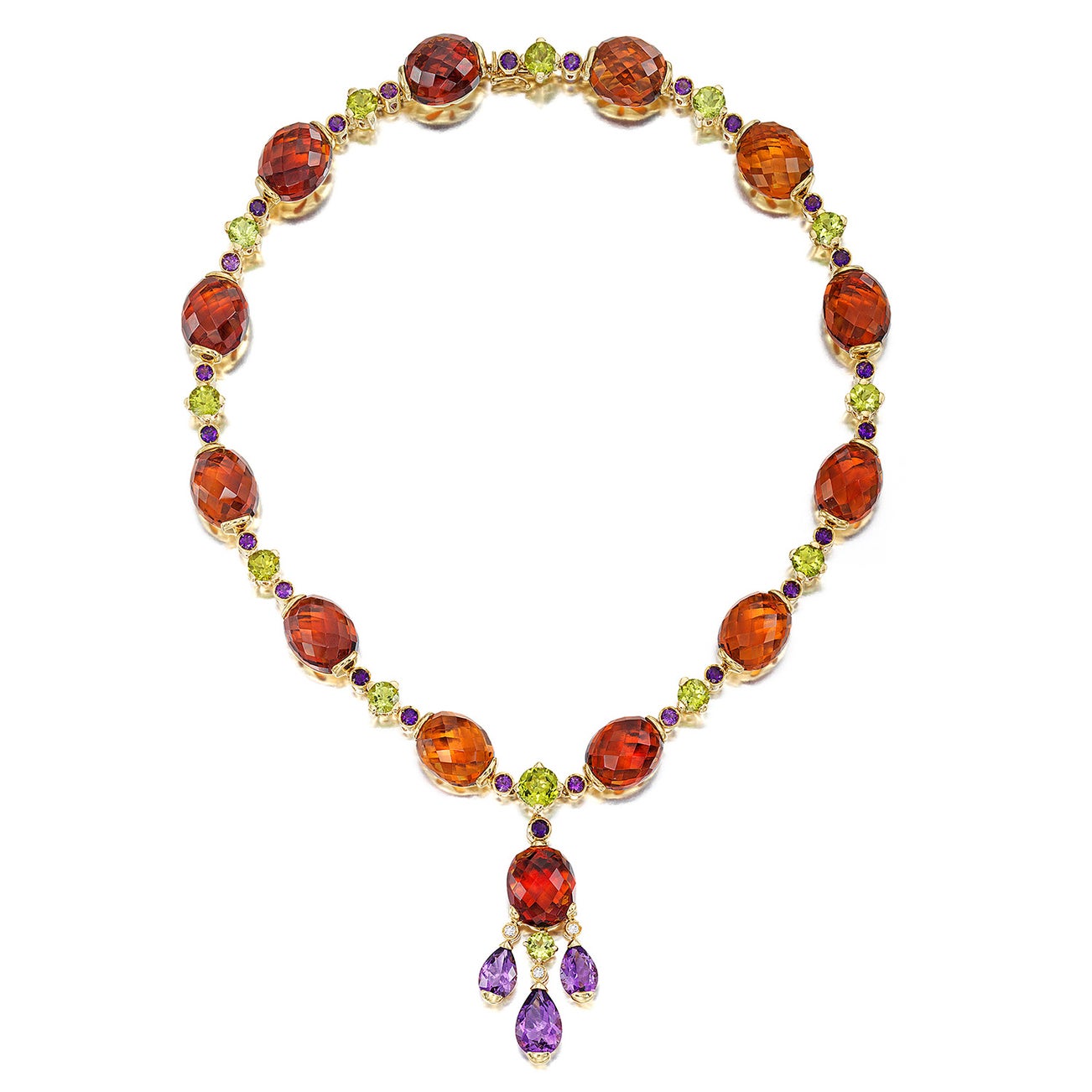 A Multi-Gem Set, Diamond, and Gold Necklace