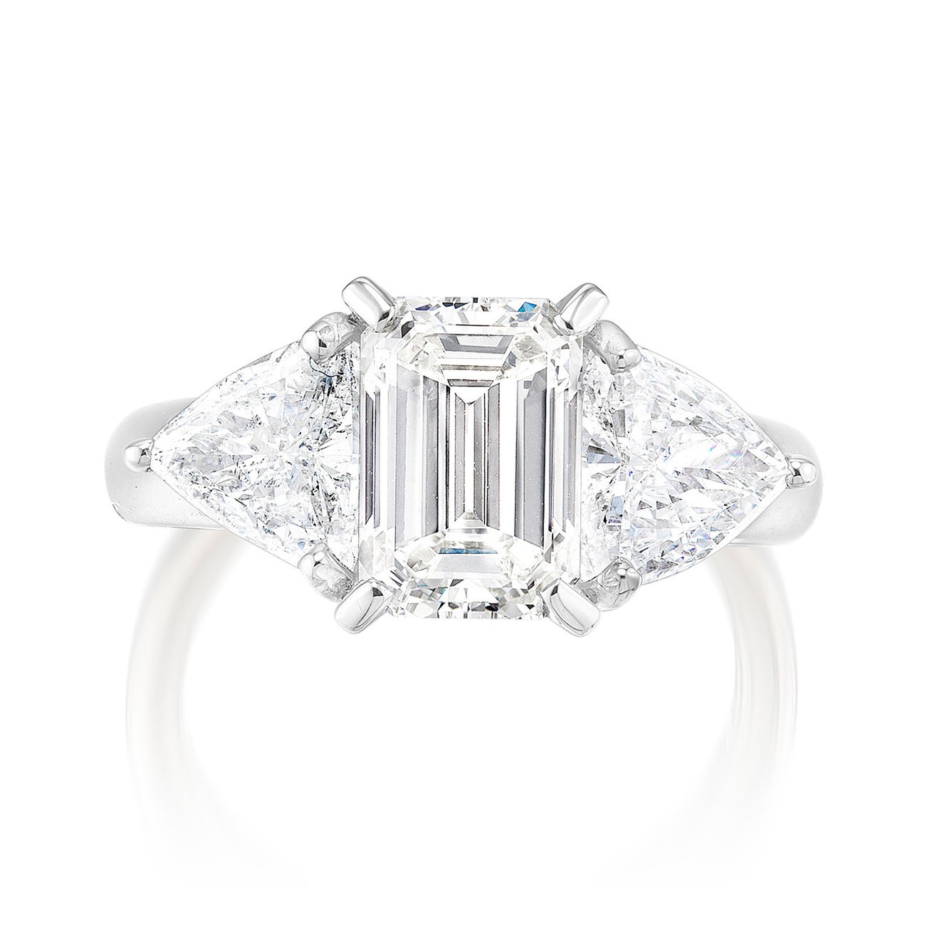 - Two triangular-cut diamonds on the sides, 1.31 carats total