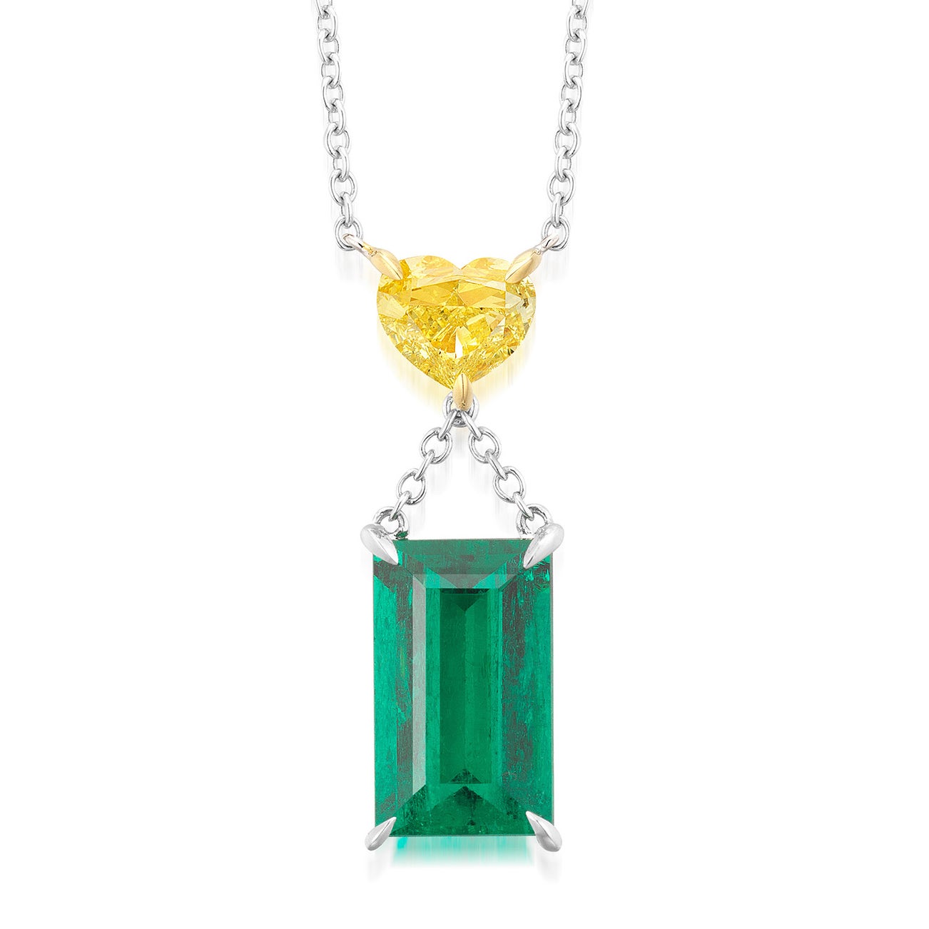 - One heart-shaped Fancy Intense Yellow diamond, 1.00 carats