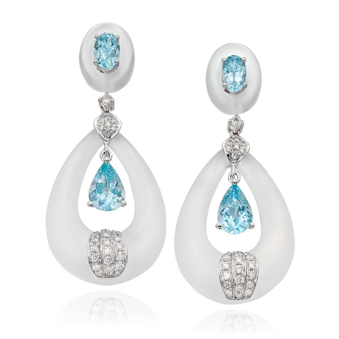 A Pair of Aquamarine, Rock Crystal, Diamond, and White Gold Earrings