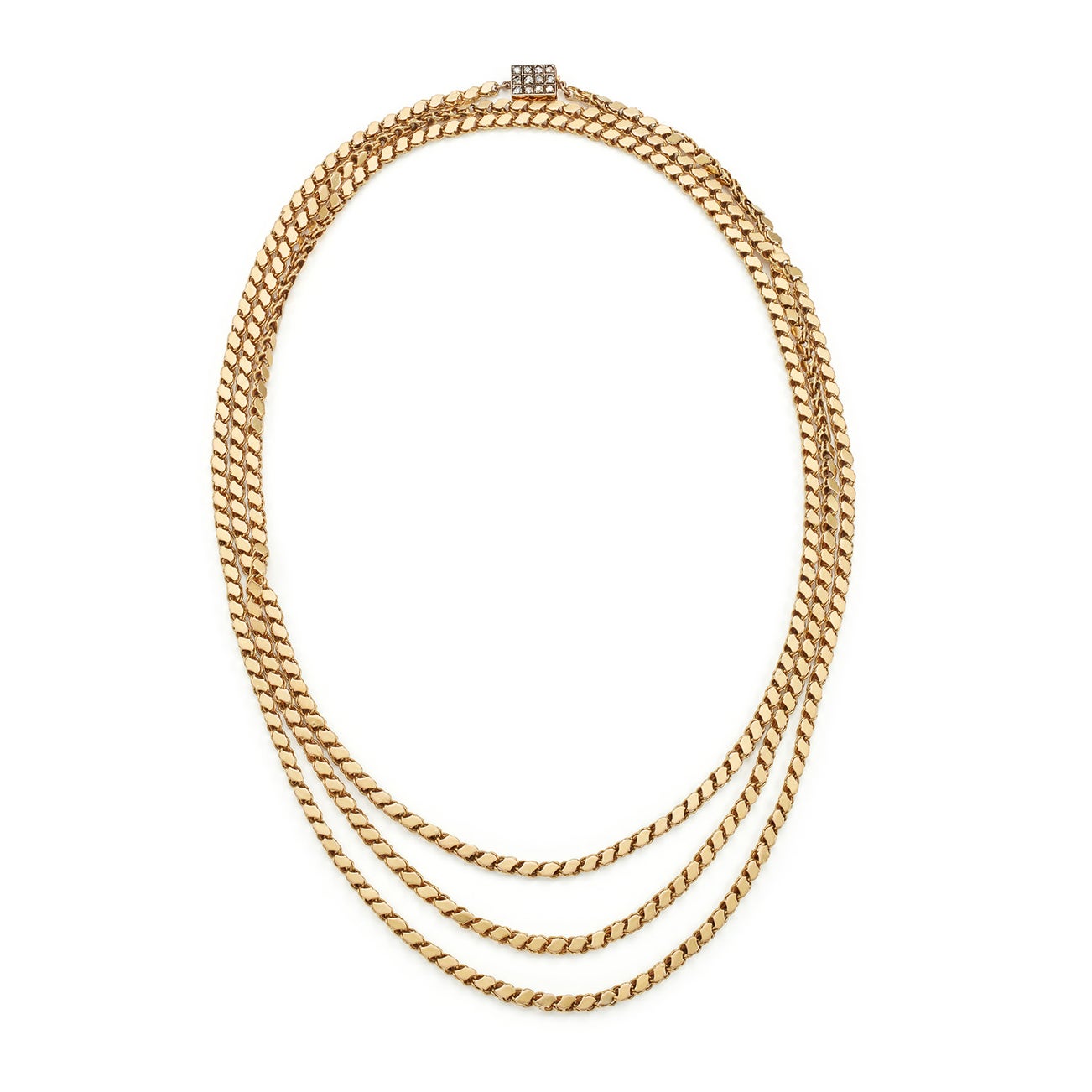 A Victorian Diamond, Silver-Topped Gold, and Gold Chain Necklace