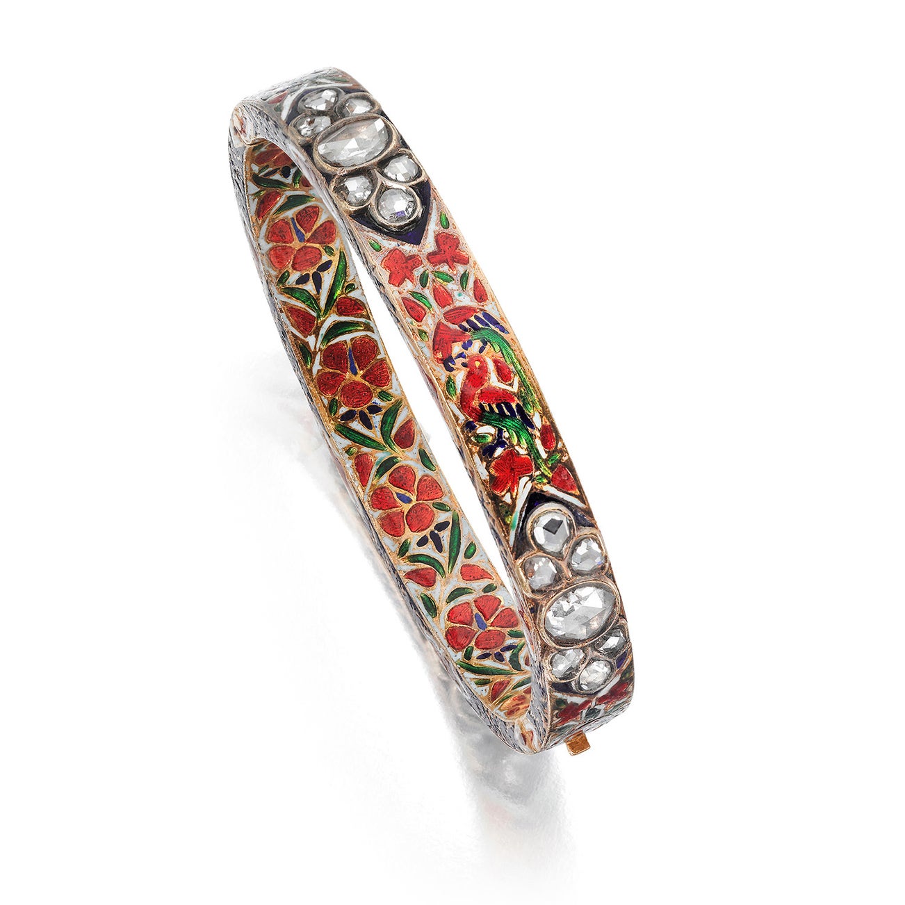An Antique Jaipur Enamel, Diamond, and Gold Bangle