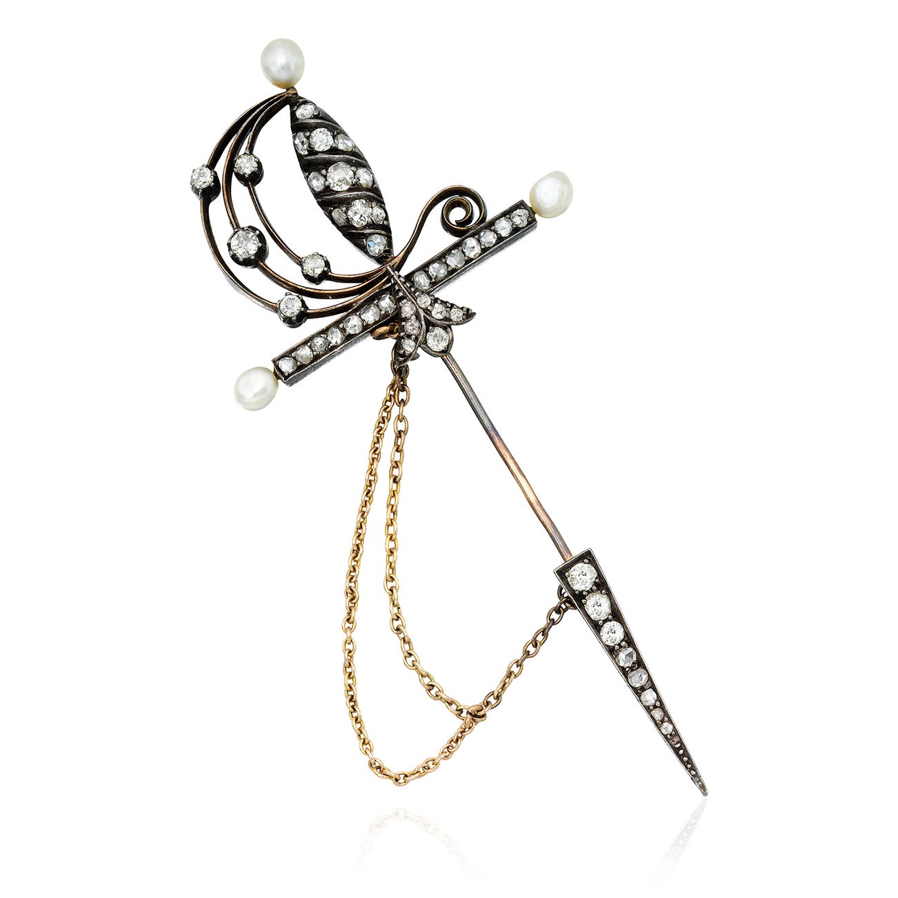A Victorian Diamond, Pearl, and Silver-Topped Gold Jabot