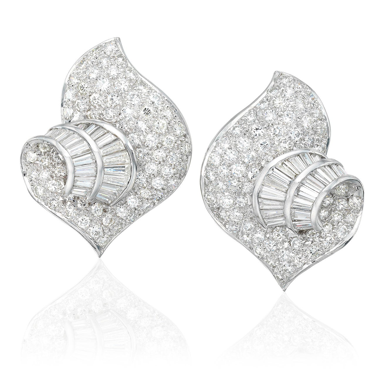 Round brilliant-cut and tapered baguette-cut diamonds, total approximately 3.80 cts.