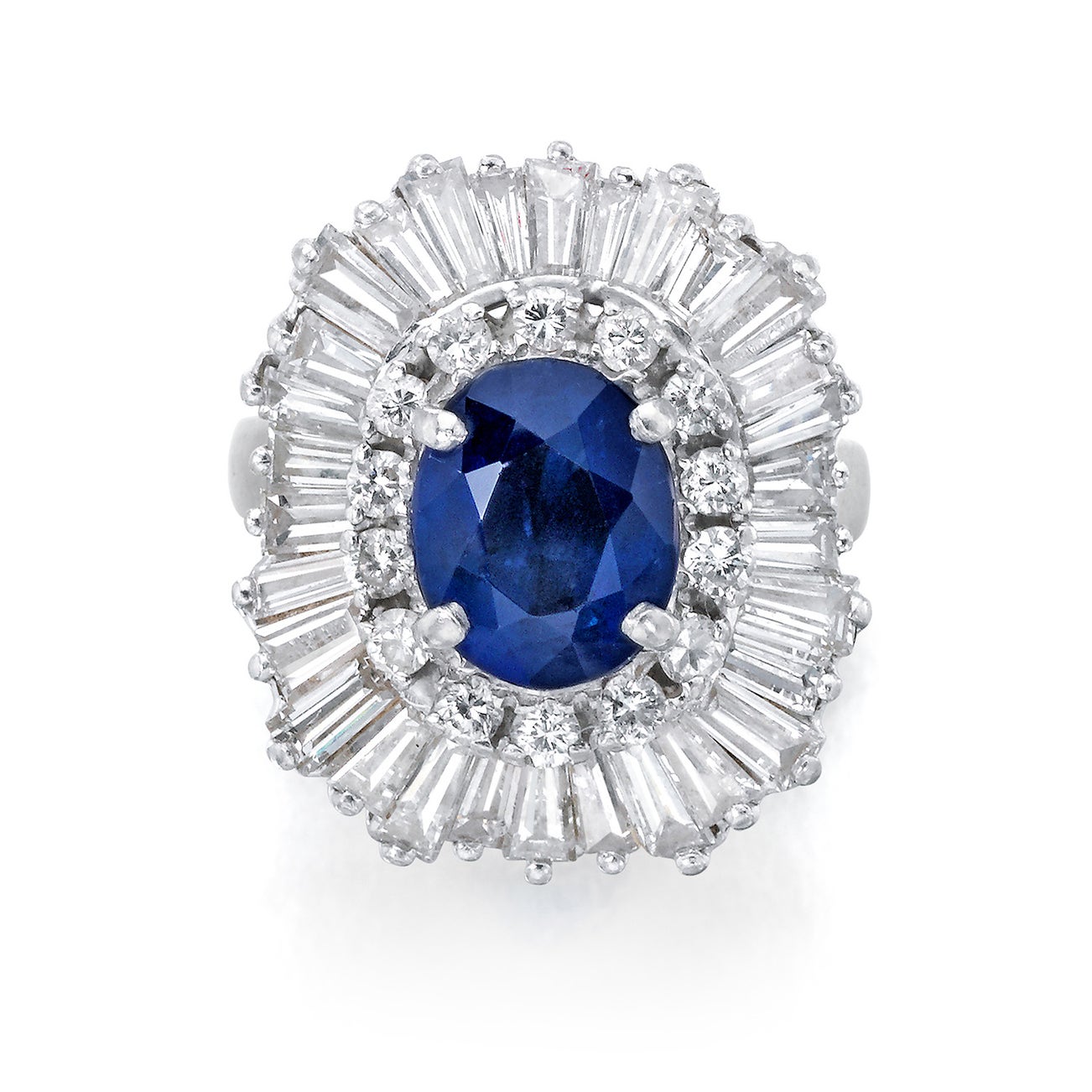 A Sapphire, Diamond and Platinum Ring/Pendant