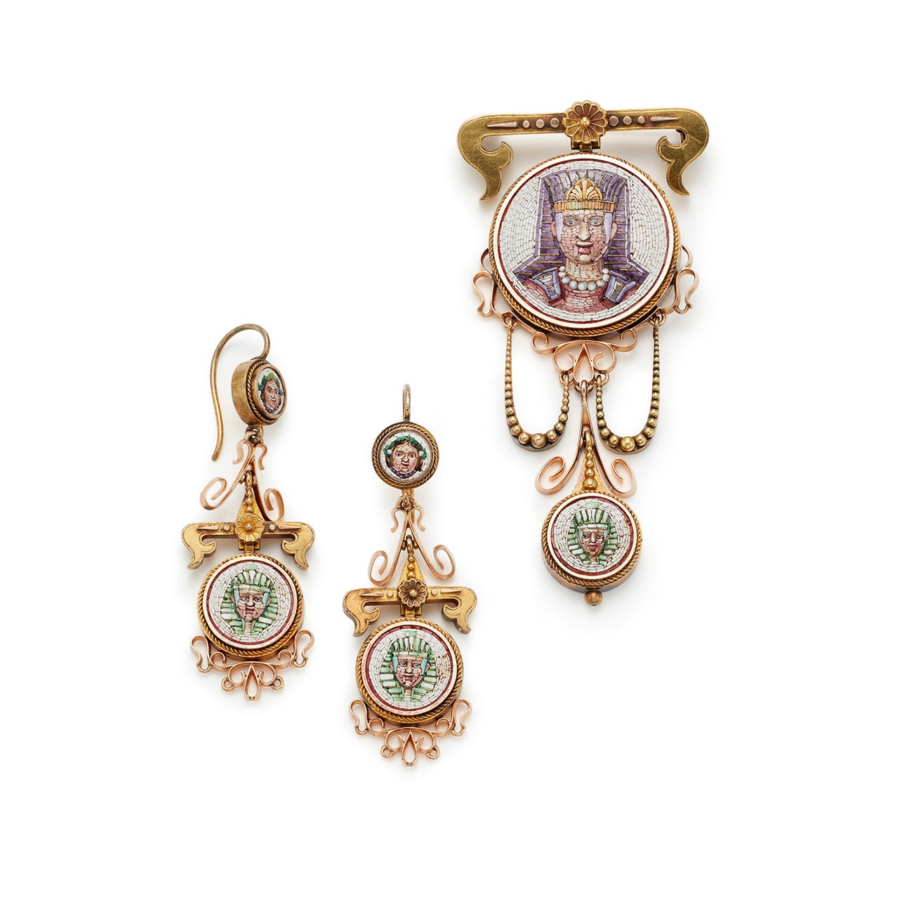 A Set of Egyptian Revival Micro-Mosaic and Gold Jewelry