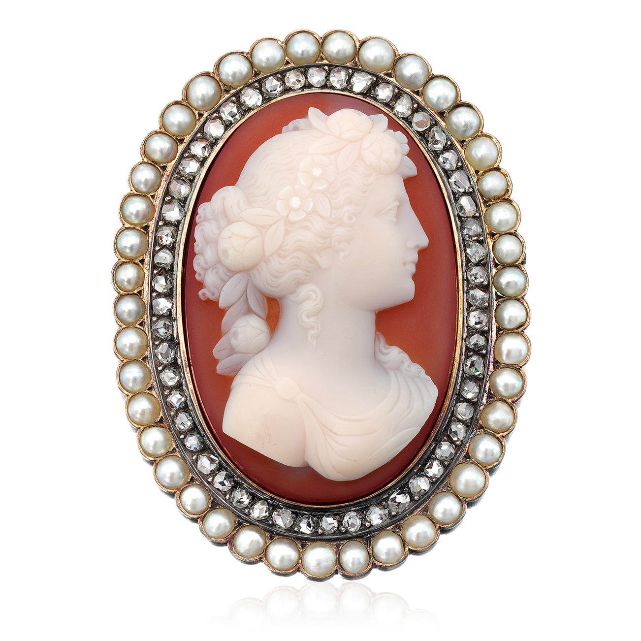 A Victorian Sardonyx Cameo, Diamond, Pearl, Silver-Topped-Gold and Gold Brooch