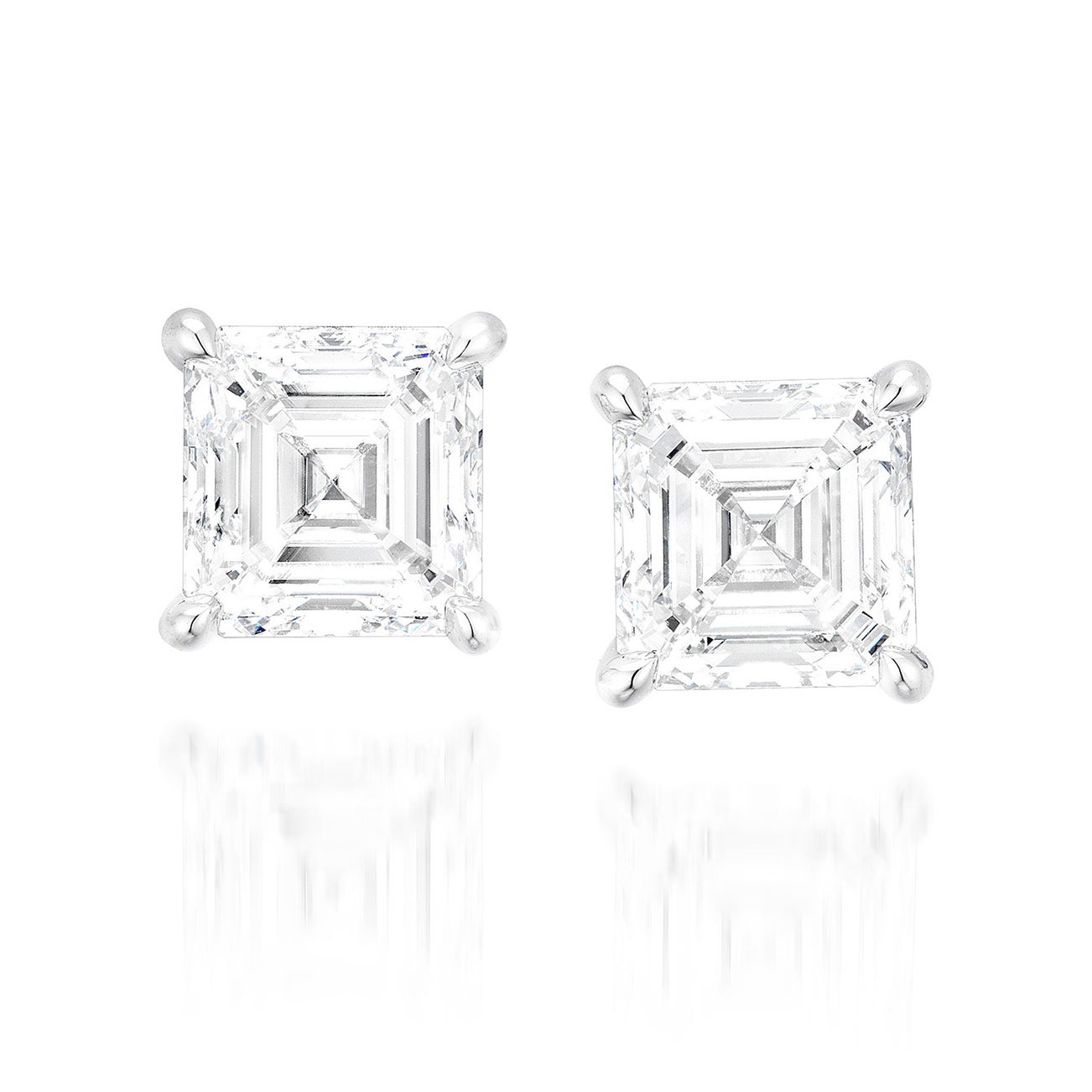 - Two square emerald-cut diamonds, 2.01 and 2.01 carats respectively