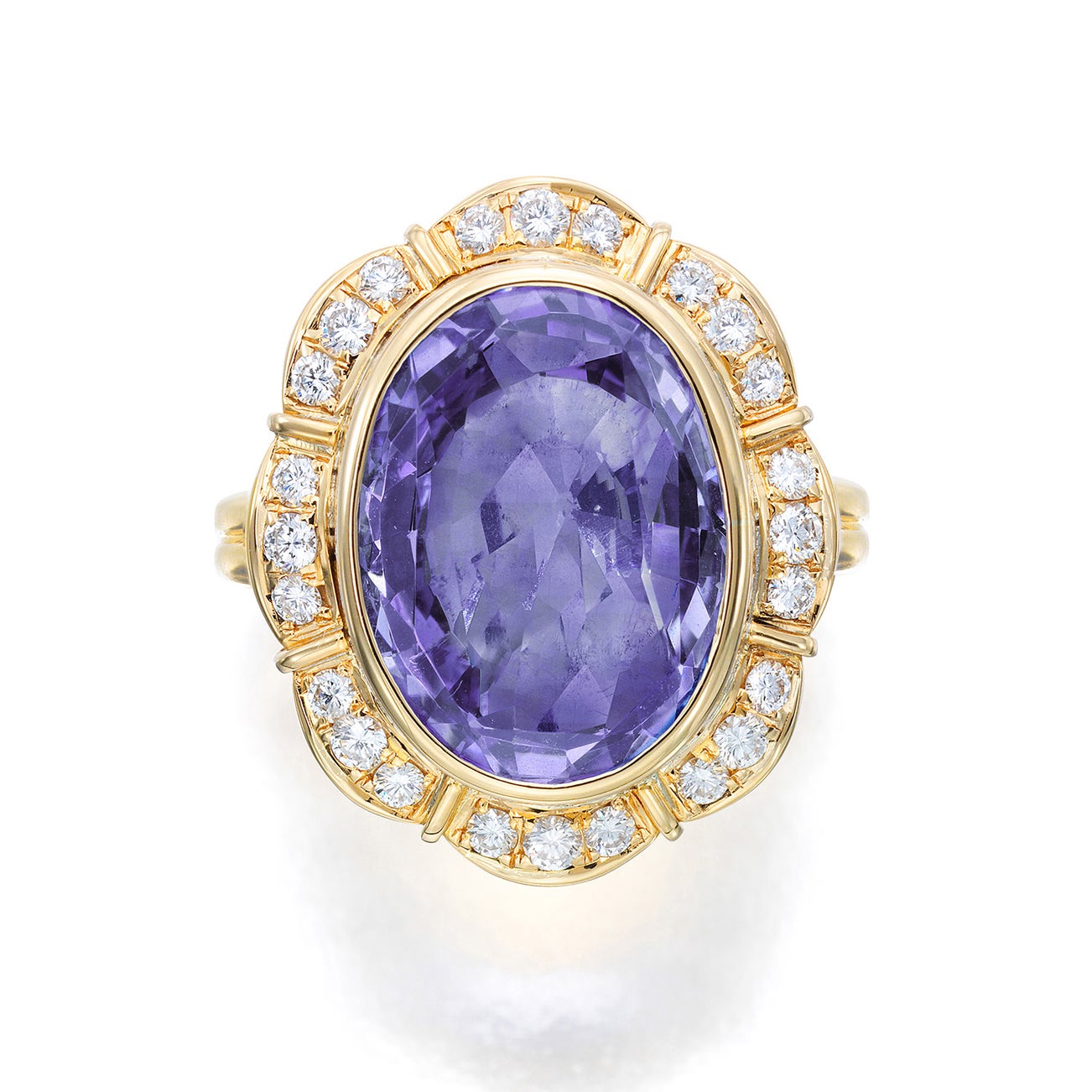 A Colored Sapphire, Diamond, and Gold Ring