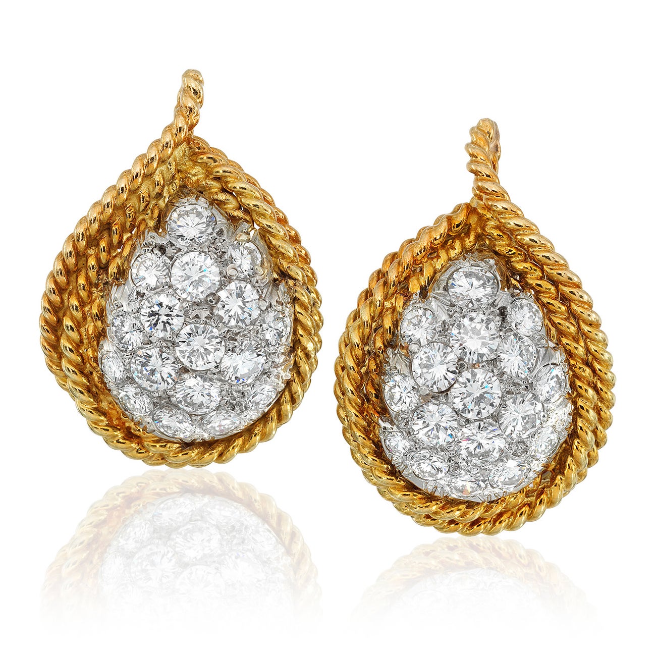 Platinum, 18K yellow gold, length approximately 1 1/8 inches, each