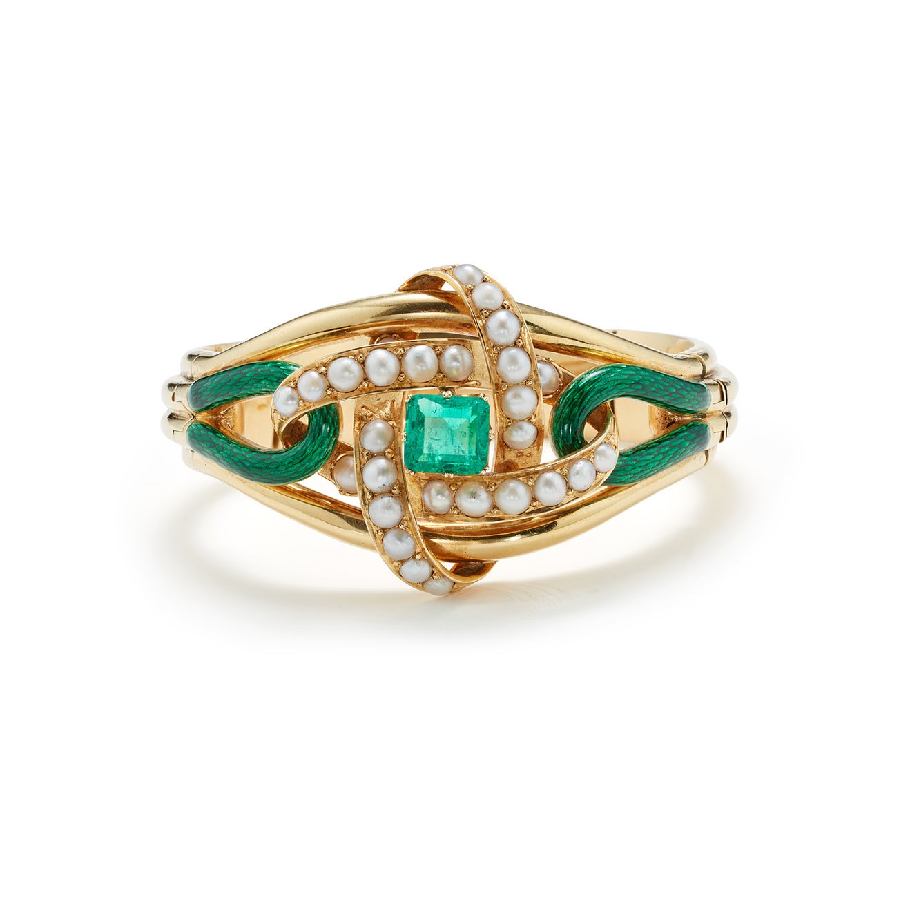 An Emerald, Pearl, Enamel, and Gold Bracelet