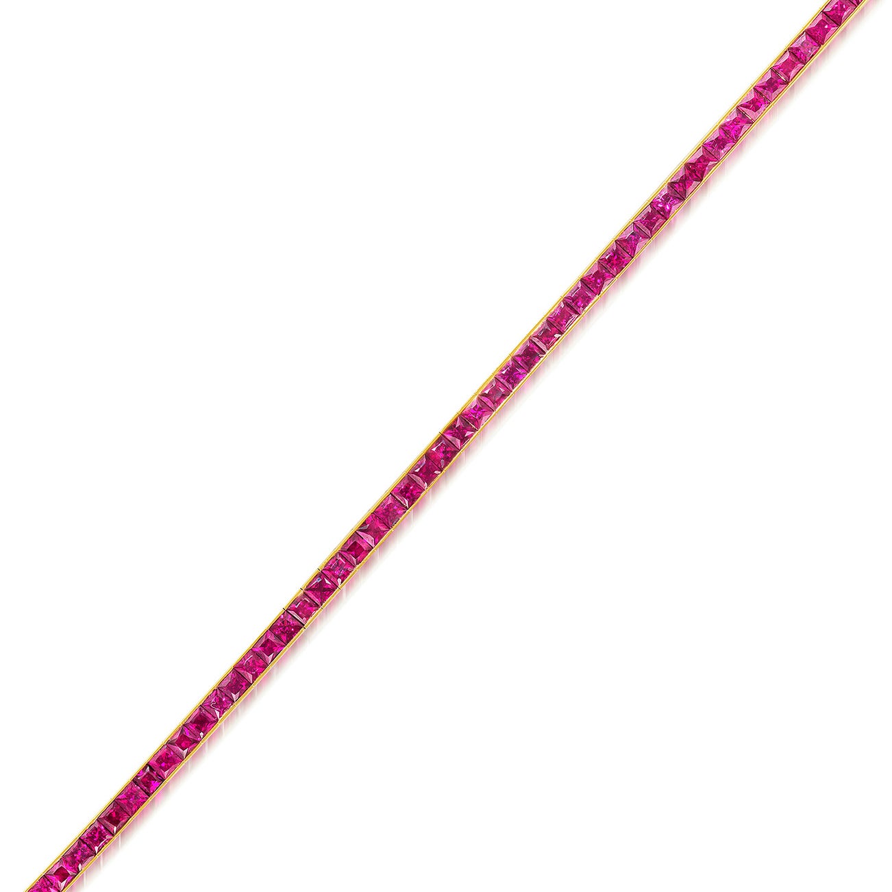 - Sixty square-cut rubies, approximately 9.00 carats total