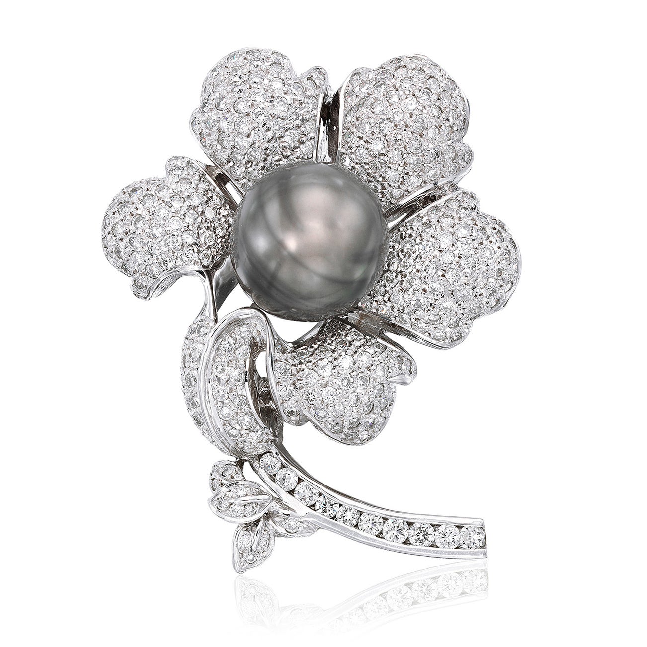 A Cultured Pearl, Diamond, and White Gold Pendant/Brooch
