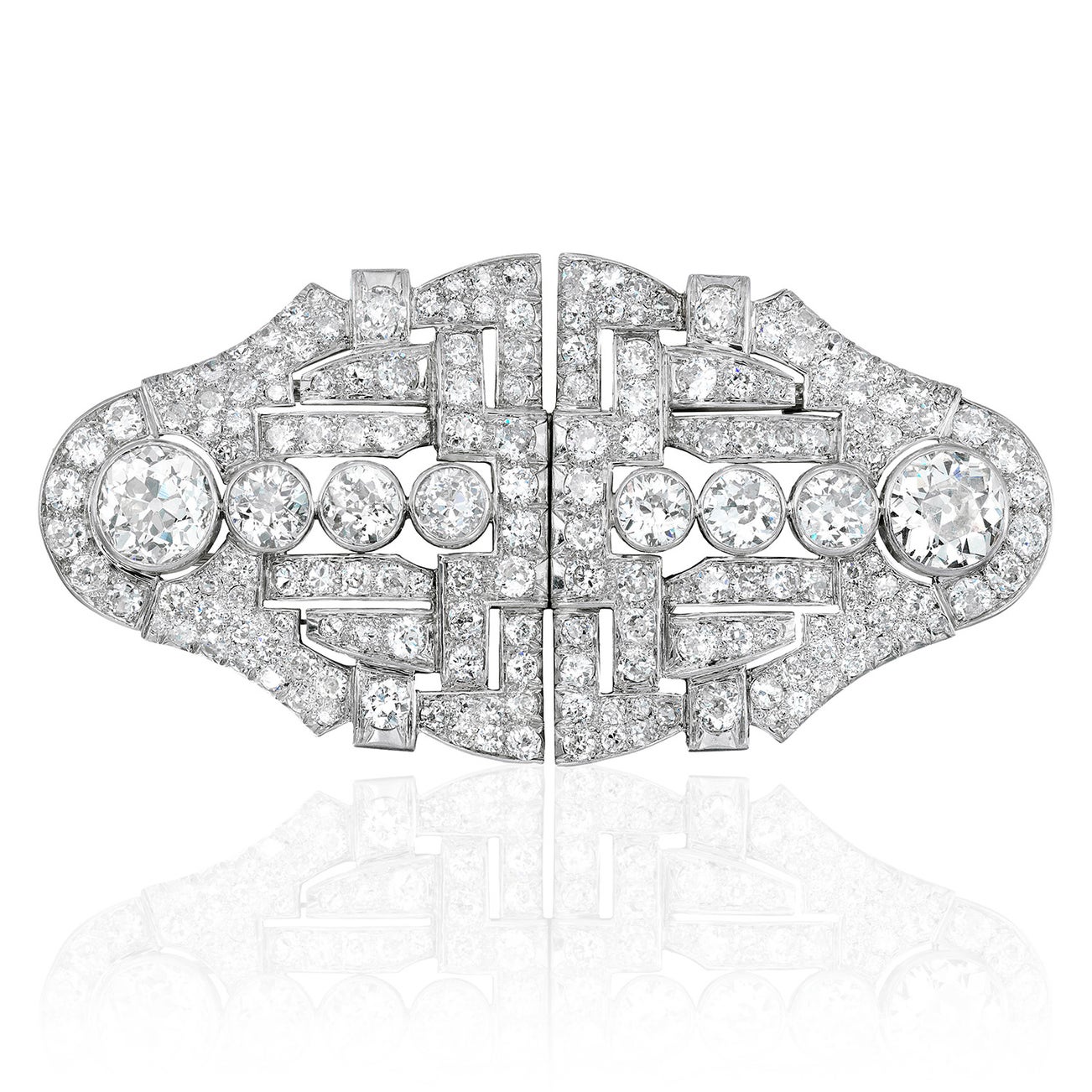 A French Art Deco Diamond, and Platinum Double-Clip Brooch