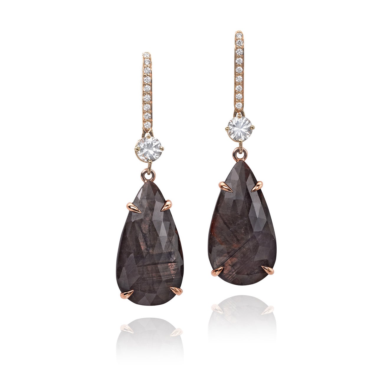 18K yellow and rose gold, length overall approximately 1 7/8 inches, pendants detachable