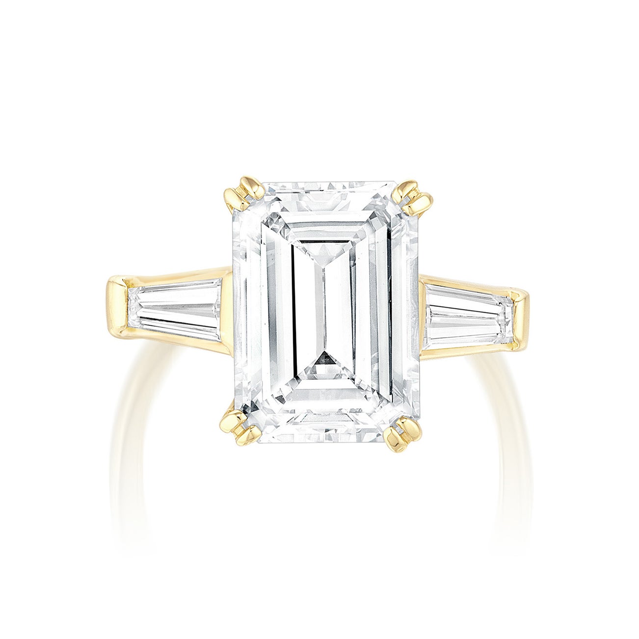 - Two tapered baguette-cut diamonds on the sides, 0.44 carat total