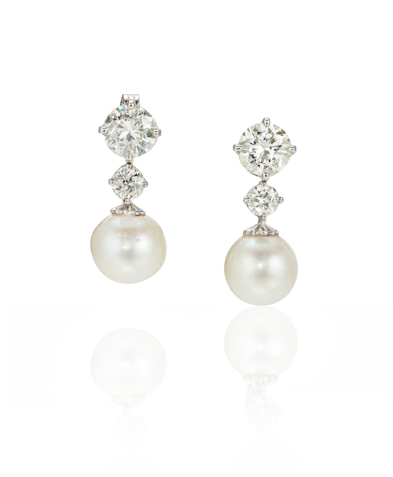 A Pair of Diamond, Cultured Pearl, and White Gold Earclips