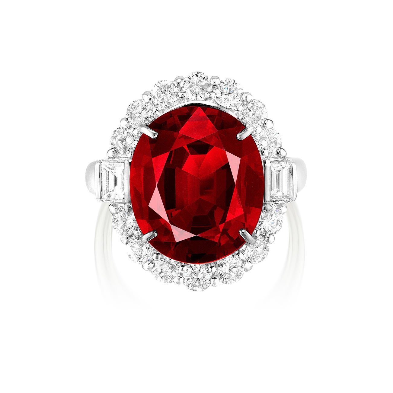 - One oval-shaped orangy-red spinel, 8.02 carats