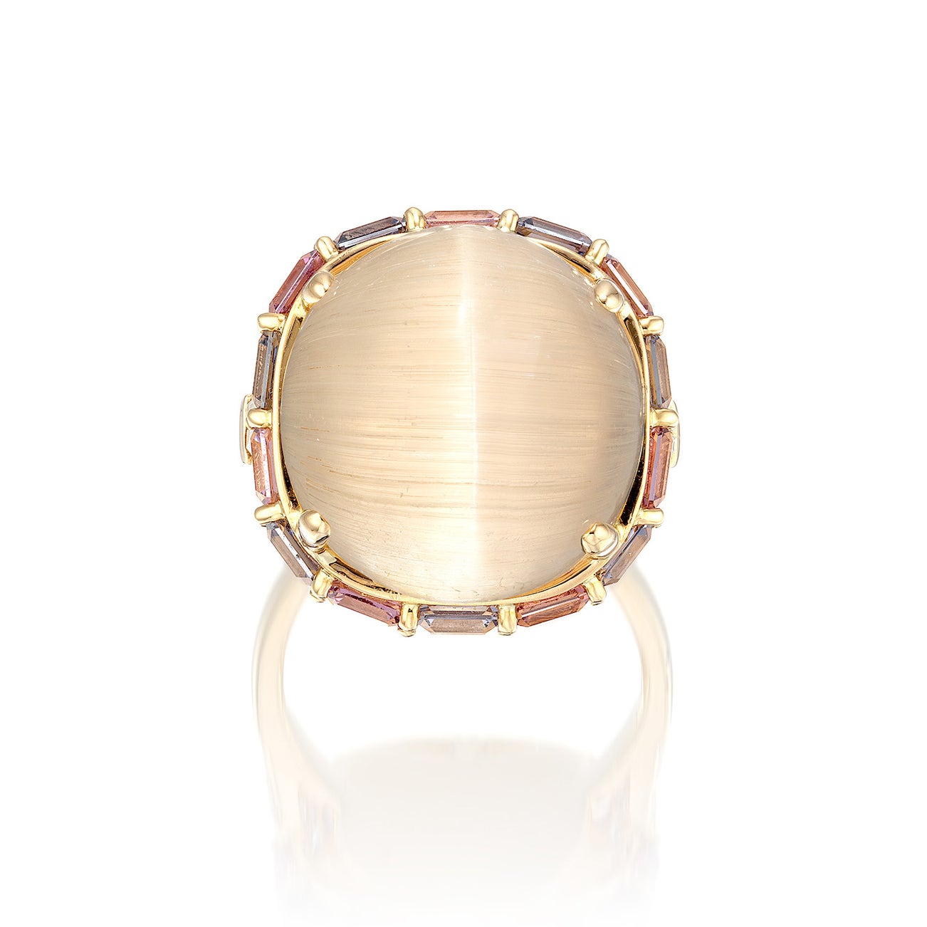 A Cat's Eye Tourmaline, Coloured Spinel and Diamond Ring