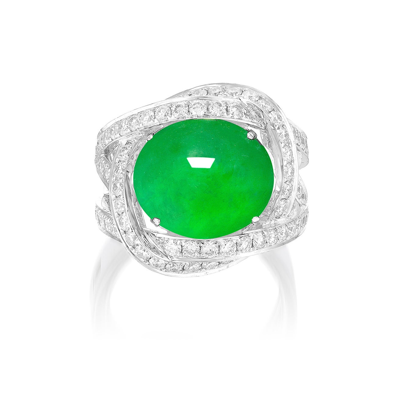 - One oval-shaped jadeite cabochon measuring approximately 12.52 x 10.68 x 5.45 mm