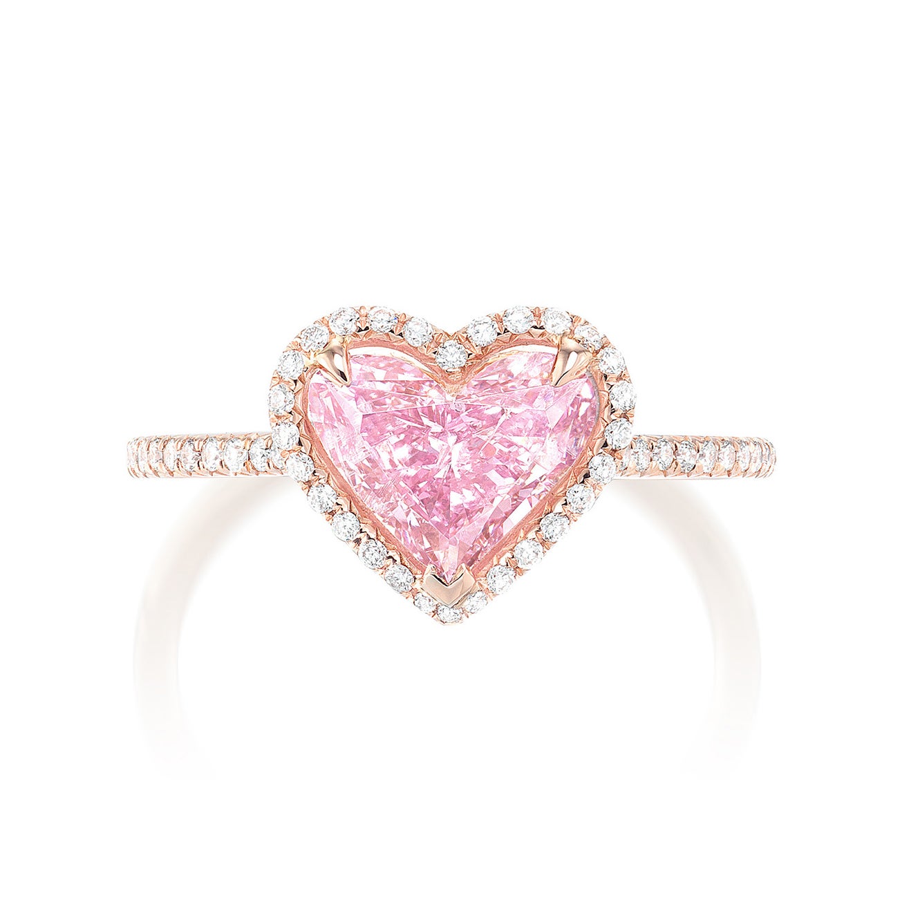 - One heart-shaped Fancy Intense Purplish Pink diamond, 1.55 carats