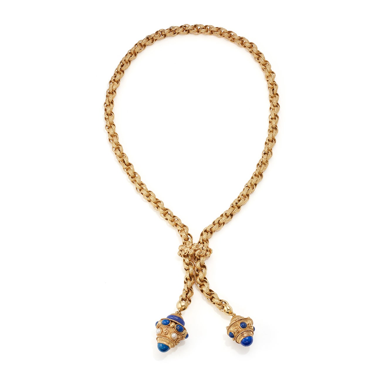 A Lapis Lazuli, Chalcedony, Pearl, and Gold Lariat Necklace