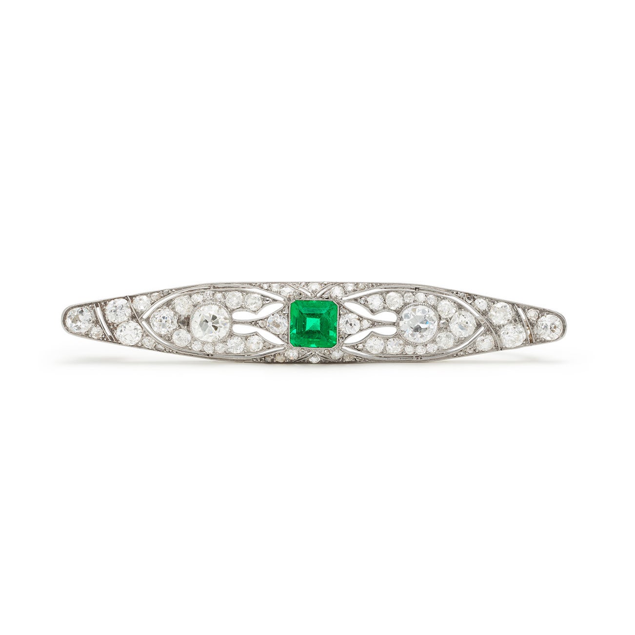 An Art Deco Emerald, Diamond, and Platinum Brooch