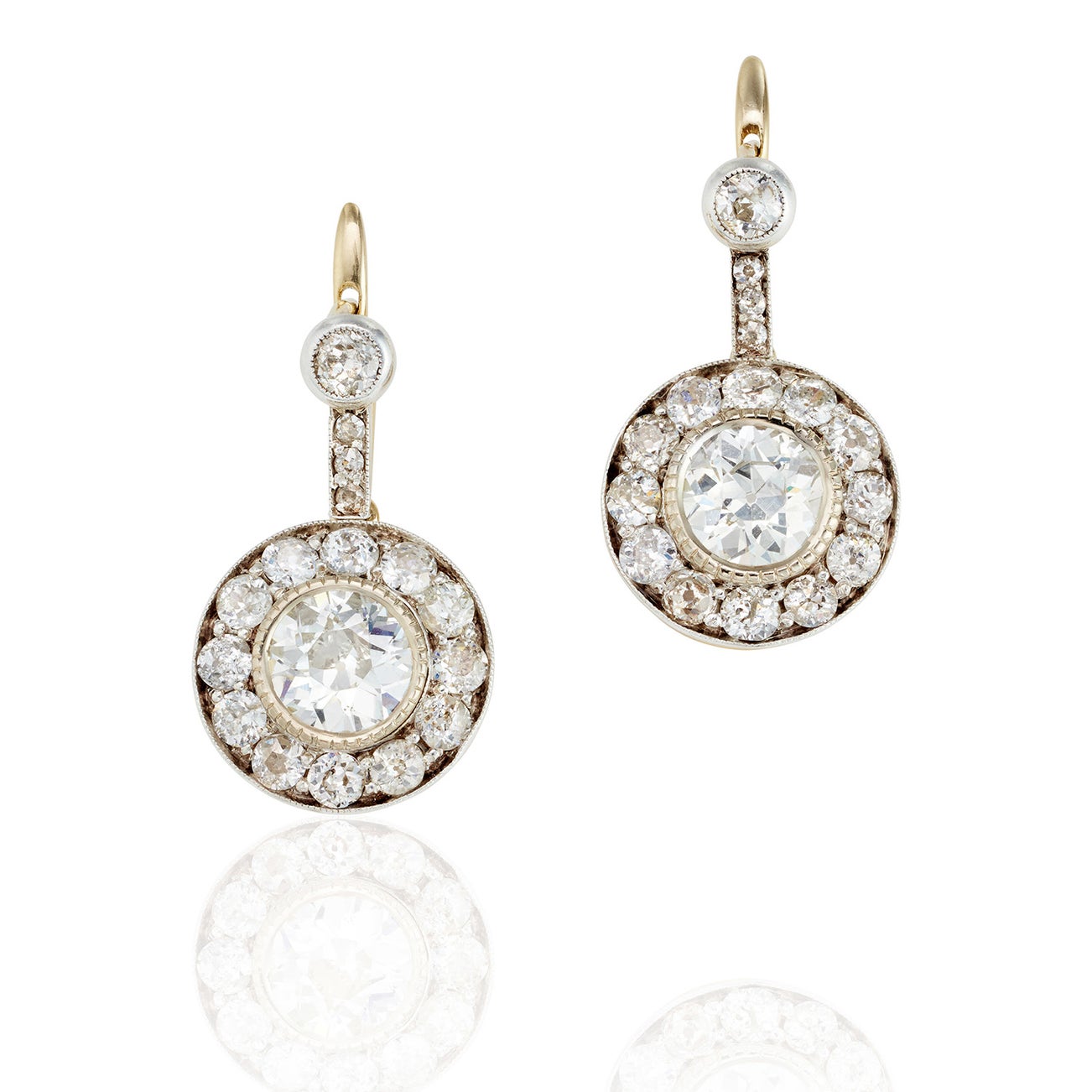 A Pair of Diamond and Silver-Topped Gold Earrings