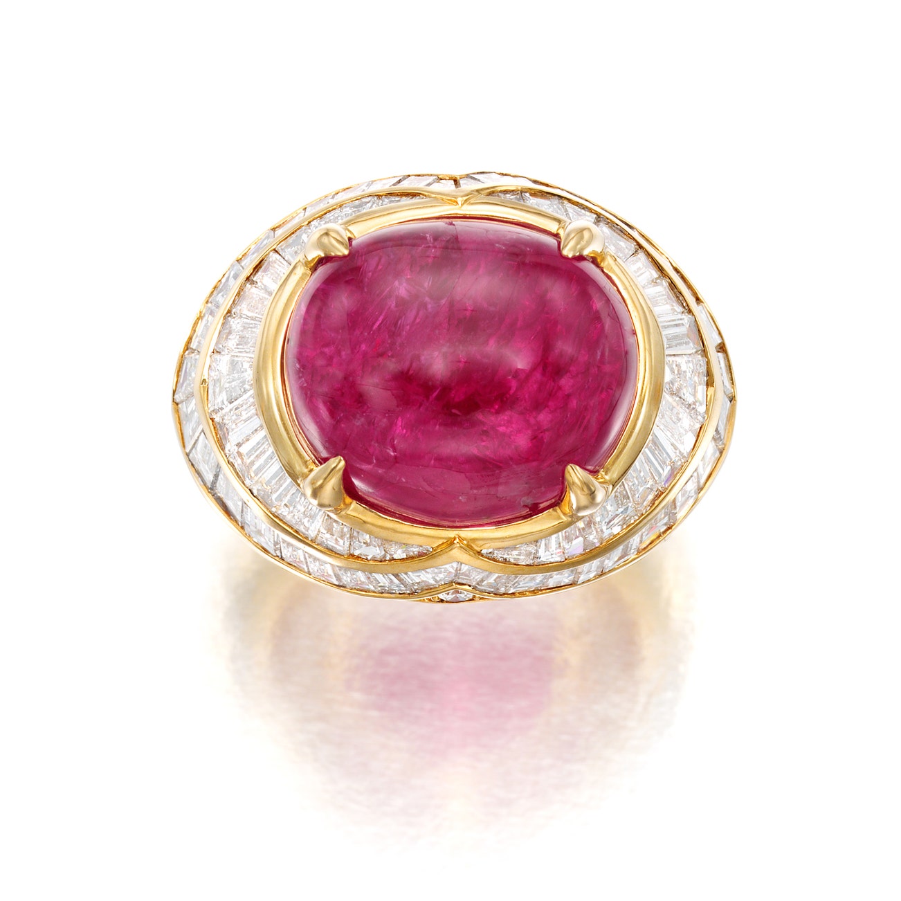 Baguette-cut, tapered baguette-cut, Round brilliant-cut diamonds, total approximately 2.85 cts.