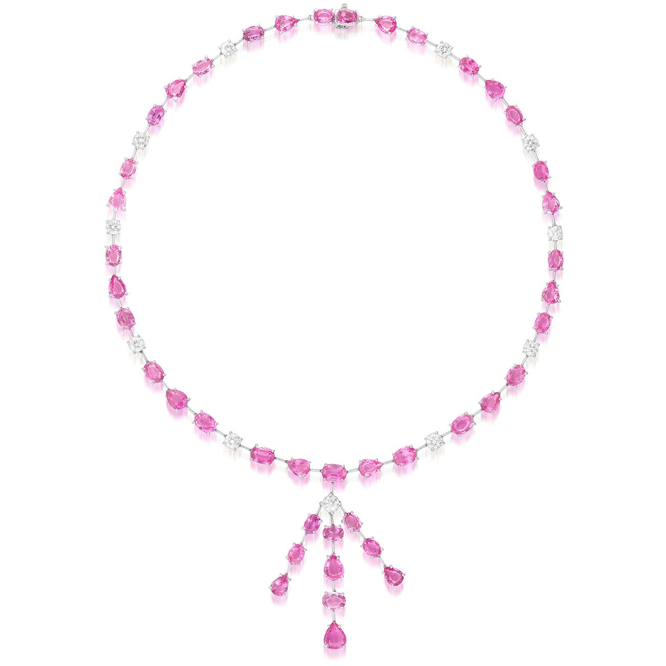 - Oval-shaped and pear-shaped pink sapphires, approximately 55.00 carats total