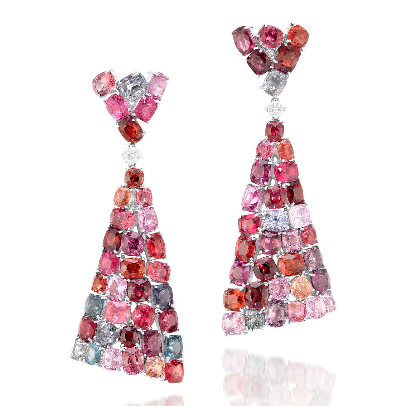 A Pair of Multi-Coloured Spinel and Diamond Earrings
