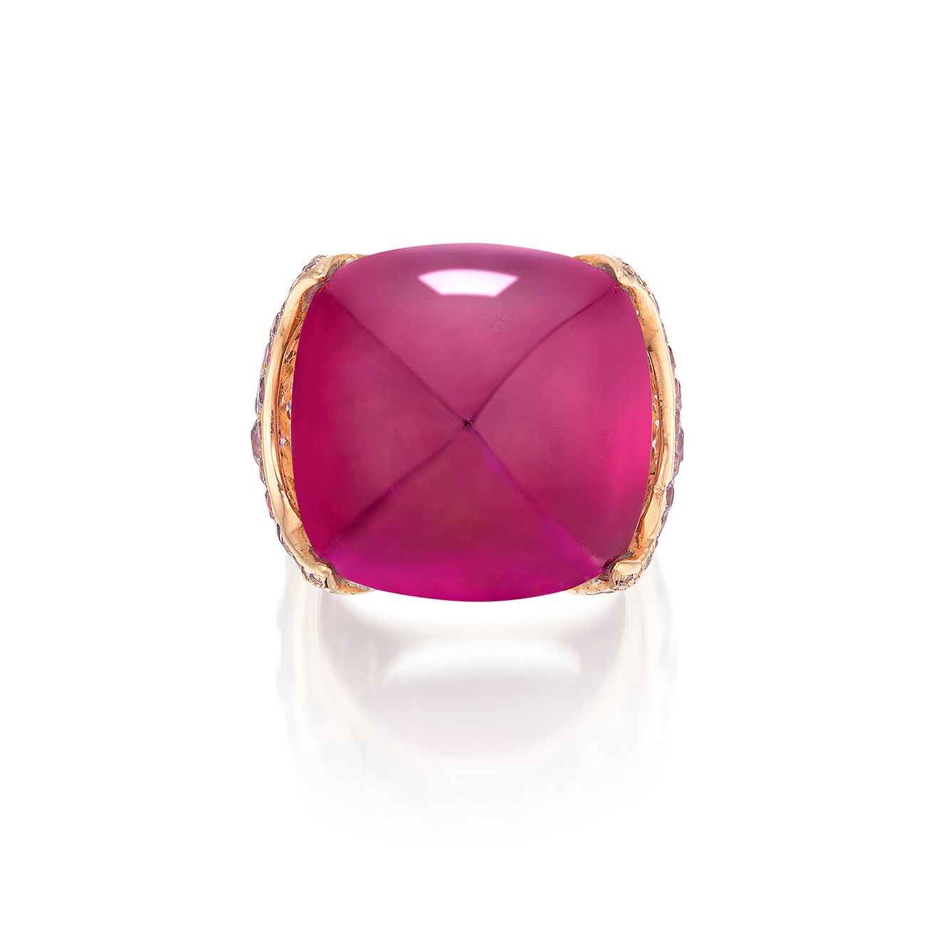 A Rubellite, Coloured Sapphire and Diamond Ring