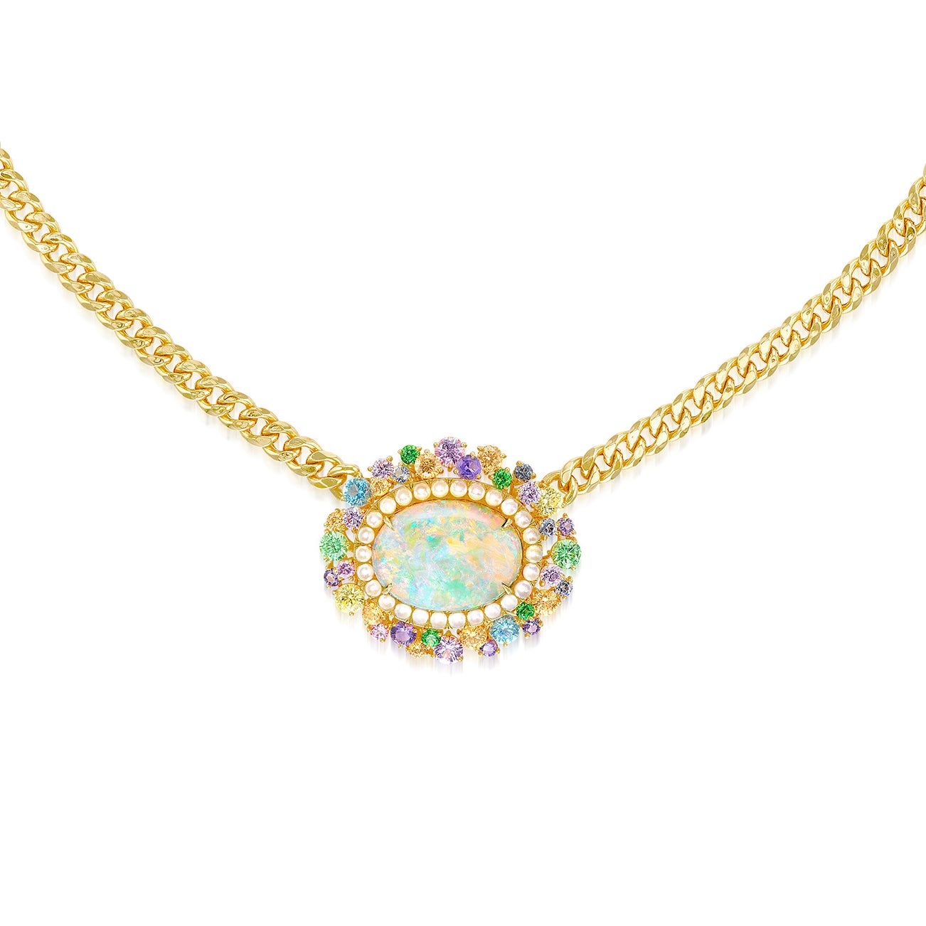 A Multi-Gem and Cultured Pearl Pendant Necklace