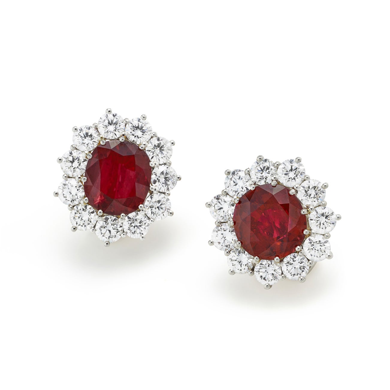 A Pair of Ruby, Diamond, and Platinum Earclips