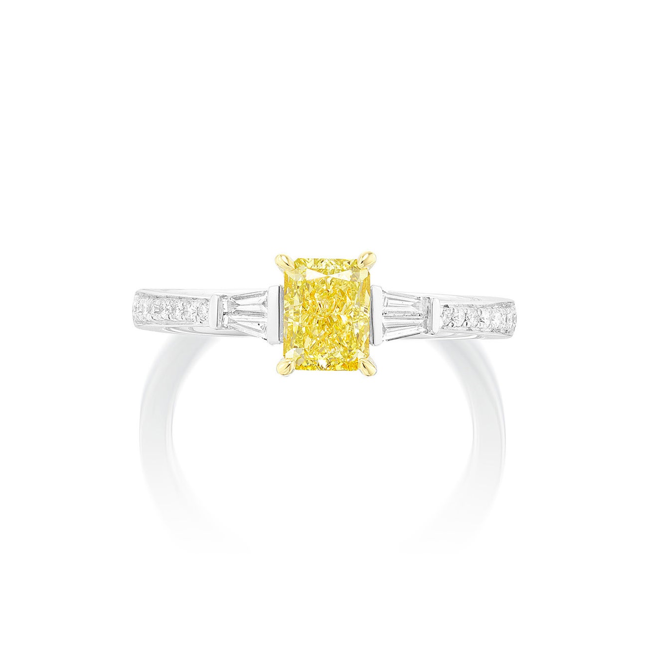 - One cut-cornered rectangular-cut Fancy Yellow diamond, 1.00 carats